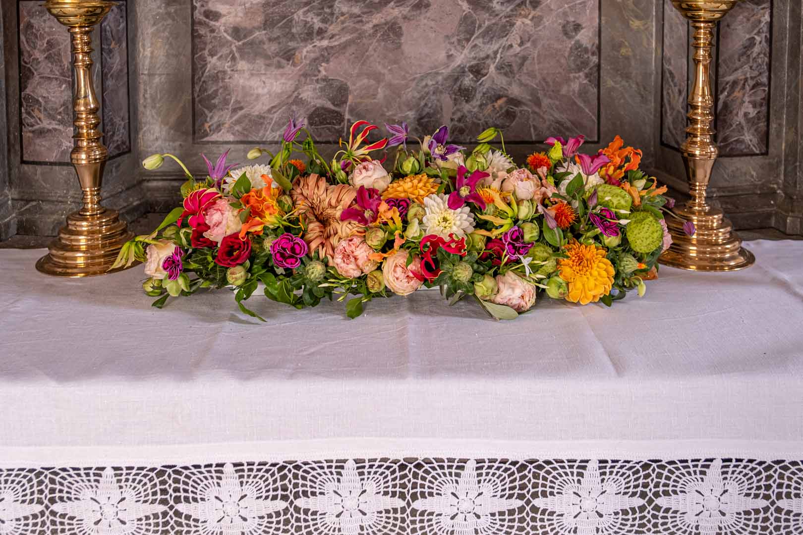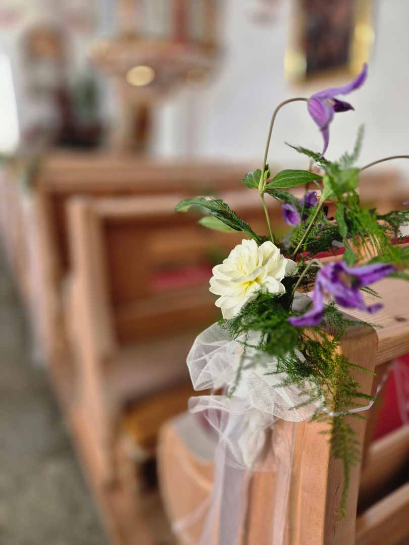 Blumen schaffen Atmosphäre – von der feierlichen Stimmung in der Kirche über den festlich geschmückten Traubogen bis hin zur harmonischen Tischdekoration im Festsaal. Ich entwickle für Sie ein stimmiges Gesamtkonzept, das sich wie ein roter Faden durch Ihre Hochzeit zieht. Dabei achte ich auf Farbkonzepte, Materialien und Blumensorten, die perfekt miteinander harmonieren und den Charakter Ihrer Feier unterstreichen. Ob elegant, natürlich oder opulent – ich verwandle Ihre Wünsche in ein florales Erlebnis.